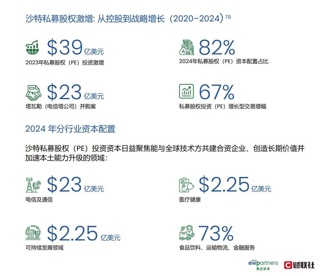 私募股权(PE)已成为鞭策GCC经济多元化和私有化的主要计谋东西。2020至2024年间,沙特PE投资总额从2。15亿美元跃升至39亿美元,2024年小幅回调至28亿美元,四年复合增加率高达85%。取此同时,地域投资策略正正在由保守收购向支撑中型平台取合伙布局倾斜:2023年,沙特PE买卖中收购型买卖占比高达99%;而到了2024年,增加型股权买卖已占67%。