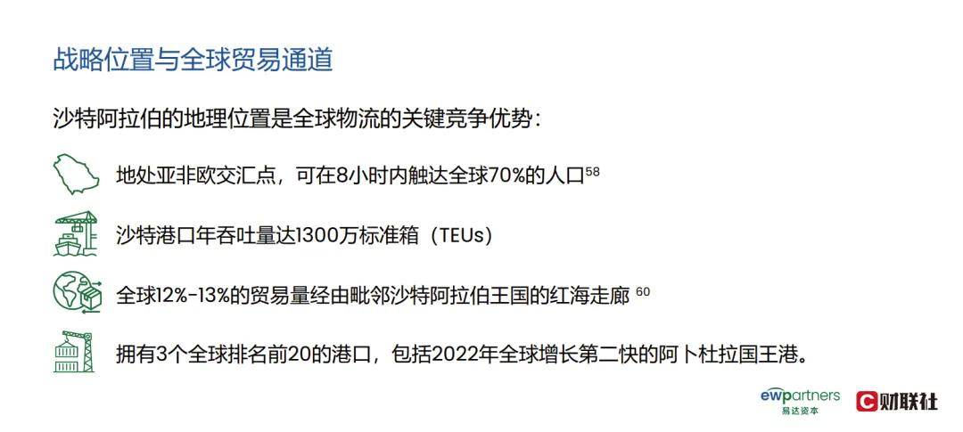 能源转型取绿色制制是另一片充满机缘的蓝海。沙特和阿曼等国正鼎力鞭策光伏、风能和氢能项目扶植,沙特方针正在2030年前成为全球最大出口国,到2030年实现50%的电力来自可再生能源,洁净能源范畴累计投资估计将达2,350亿美元。